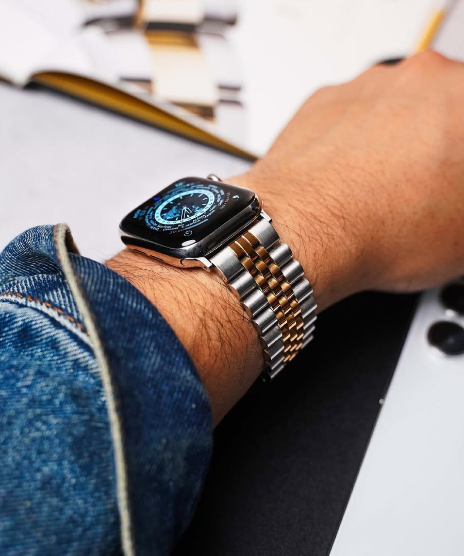Opgrader dit Apple Watch med vores luksusstil remme. Vores omhyggeligt udvalgte sortiment kombinerer elegance med praktisk design, gør det muligt for dig at skille dig ud, uanset om du er til sport eller til sociale begivenheder. Vores remme er skabt til at forstærke dit ur med en stil, der passer til enhver lejlighed, hvilket sikrer, at dit ur ikke bare er et tidsmåler, men et ægte modeudsagn.