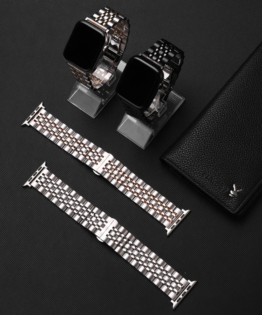 Opgrader dit Apple Watch med vores luksusstil remme. Vores omhyggeligt udvalgte sortiment kombinerer elegance med praktisk design, gør det muligt for dig at skille dig ud, uanset om du er til sport eller til sociale begivenheder. Vores remme er skabt til at forstærke dit ur med en stil, der passer til enhver lejlighed, hvilket sikrer, at dit ur ikke bare er et tidsmåler, men et ægte modeudsagn.