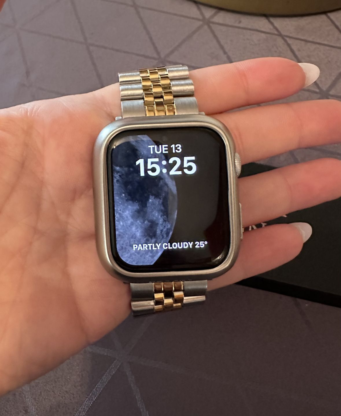 Vores Jubilee Date armbånd er designet til at passe til alle Apple Watch modeller, fra Serie 1 til 10, inklusiv SE og Ultra. Dette unisex armbånd er perfekt for både mænd og kvinder, og tilbyder en alsidig stil, der ser fantastisk ud, uanset om du er klædt formelt på eller i afslappet tøj. Jubilee Date er din ideelle partner til alle lejligheder.